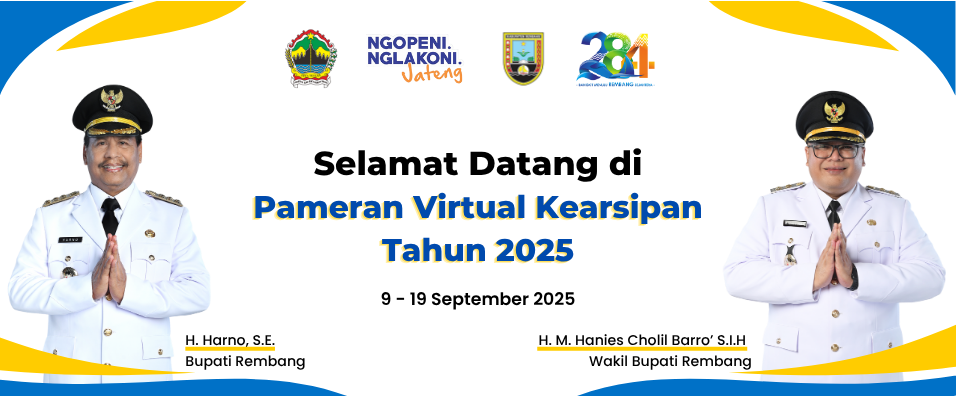 Pameran Virtual Kearsipan Jawa Tengah Tahun 2025 yang diselenggarakan pada tanggal 9 s.d 19 September 2025 dengan tema "NGOPENI NGLAKONI ARSIP JATENG"